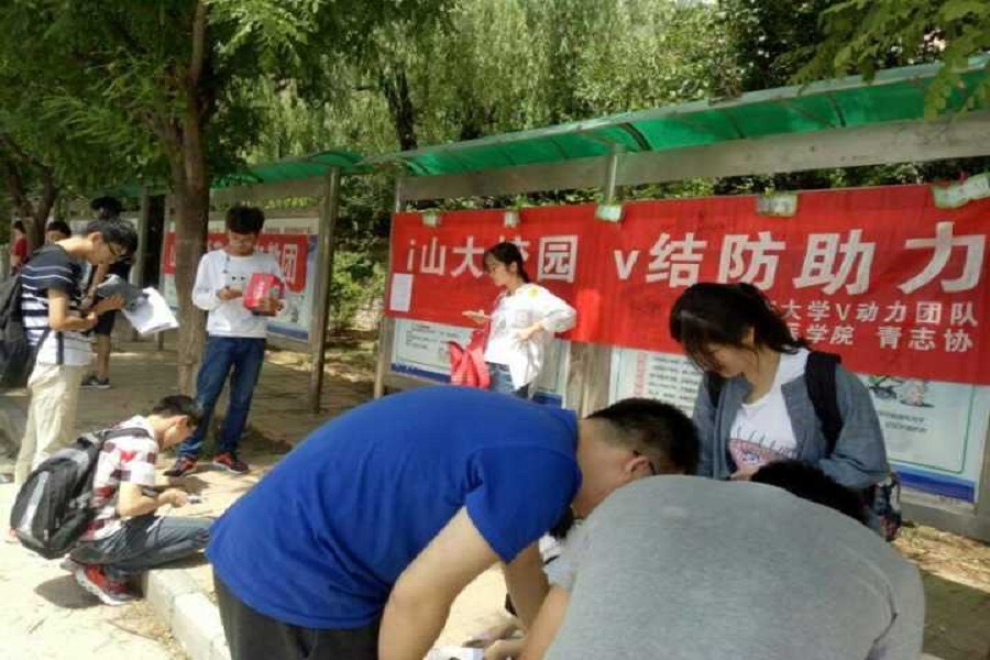 2017年5月13日至5月14日,基础医学院V动力实践队携手青年志愿者协会在山东大学六大校区食堂门口成功举办以“i山大校园,v结防助力”为主题的结核病防治宣传趣味活动。活动秉承宣传结核防治知识的宗旨,丰富了同学们的课余生活,使同学们在游戏中提高了自己对结核病防治的认识。