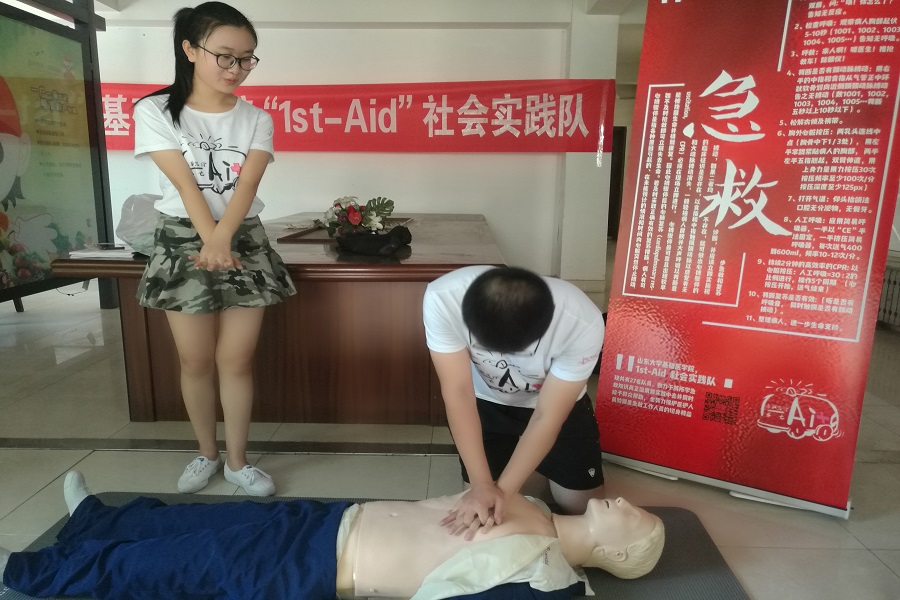 7月14日,“1st-Aid”实践队前往文汇家园进行宣讲活动,此次宣讲围绕心肺复苏术、急救包扎和老年人防跌倒展开,获得了社区居民的一致好评。