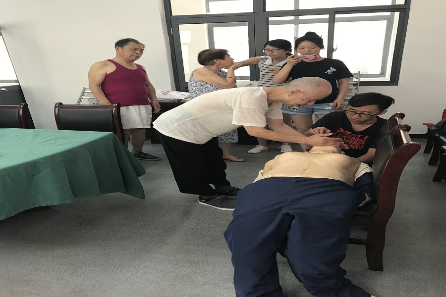 在整个心肺复苏的宣讲过程中,居民们先是对国内外触目惊心的数据比对感到震惊;而副队长脱口而出的重点和标准的动作又让小区的居民们不禁赞叹。宣讲内容清晰明了,生动幽默,现场气氛十分活跃。刘家庄小区的居民们都听的都很认真,并且熟记于心。但是在实践过程中还是有或多或少的错误发生。为了纠正居民们的动作,提高心肺复苏的质量,We do社会实践队的成员便在一旁不厌其烦地为居民们纠正错误。对于社区居民们提出的问题,我们的队员也耐心地进行了解答。前来听讲的居民们一一上来在指导下进行了实操,这次宣讲获得了非常大的成功。