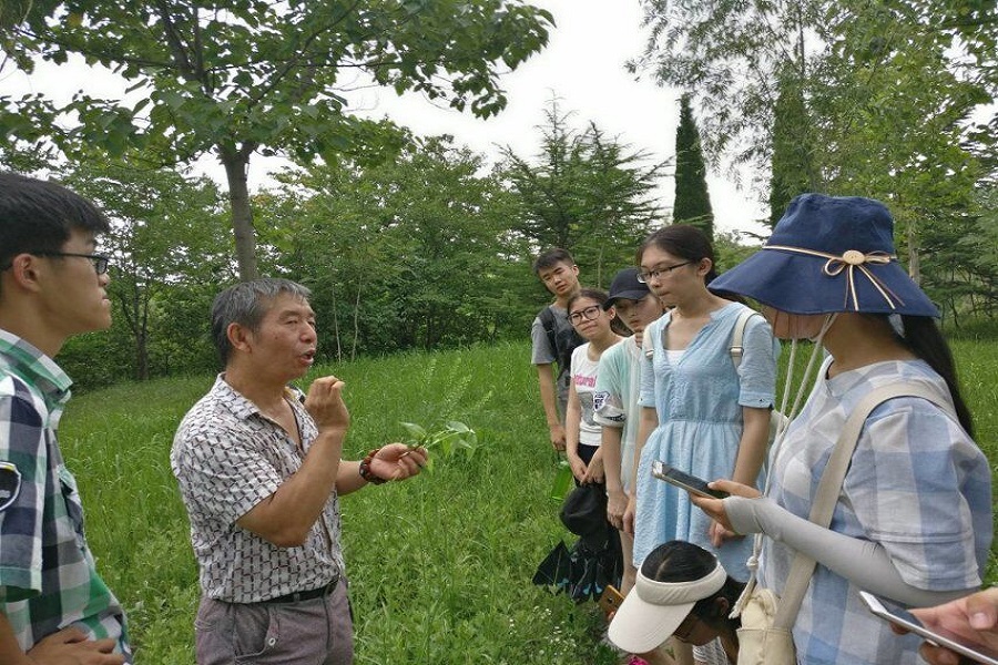 上午8点,队员们到达青州植物园。在参观植物园的过程中,陈沪宁老师给队员们讲解沿途植物的分类、特征、俗名、学名、用途、种植方法以及在生活医药中的应用。如国槐在春天开花为刺槐,花可吃,夏天开花则不能吃,可入药,具有消炎作用;柿子树可根据树皮的不同来判断嫁接部位,并提醒队员们吃过柿子不能喝酒防止长结石,树立健康意识;艾,含有挥发油,现代常用来穴位灸治,端午时,人们用艾叶煮洗脸以趋避外邪;还有曼陀罗,茜草,黄花蒿,连翘,五角枫,玉兰,人参等药植具有各自的功效和特征。中途休息时,陈老师看到有些队员被蚊虫叮咬,提醒队员们:“以后野外活动时,一定要穿长裤长衫,不然很容易出现安全问题。”并给队员们讲起了自己带队实习时的经历,让队员们外出活动时一定要树立安全意识。植物园参观完毕后,队员们又一同参观了龙潭湖和东夷之都,深入了解东夷传统文化。
