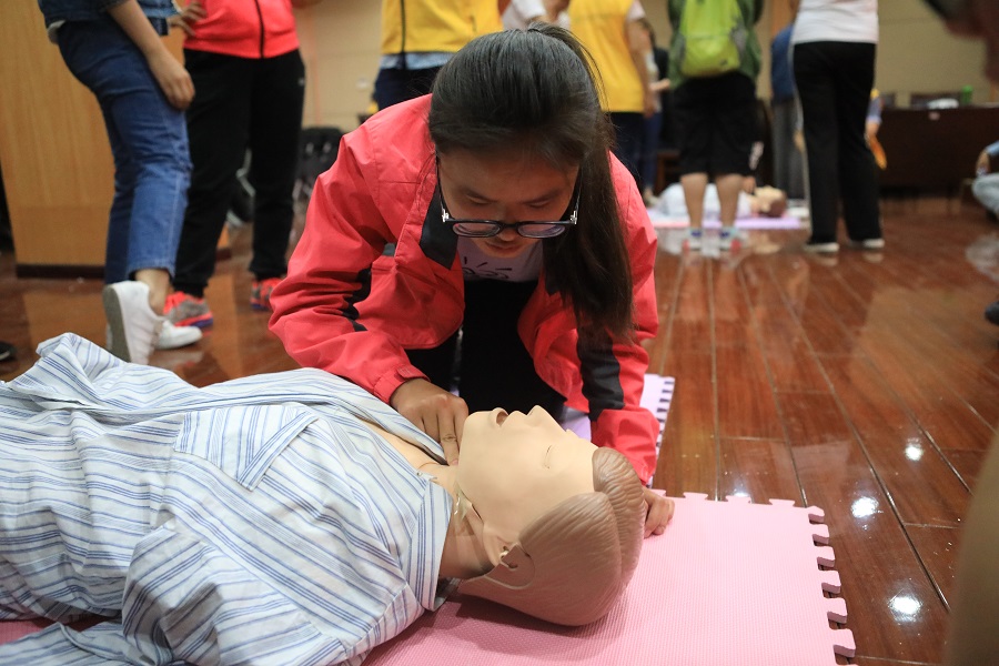 而当天下午,在理论基础与老师的指导下,培训成员们虚心求教,反复练习,致力于使自己的CPR操作达到正确标准高效的要求,真正地做到学以致用。最后,急救技能培训在成员们的考核中落下帷幕。