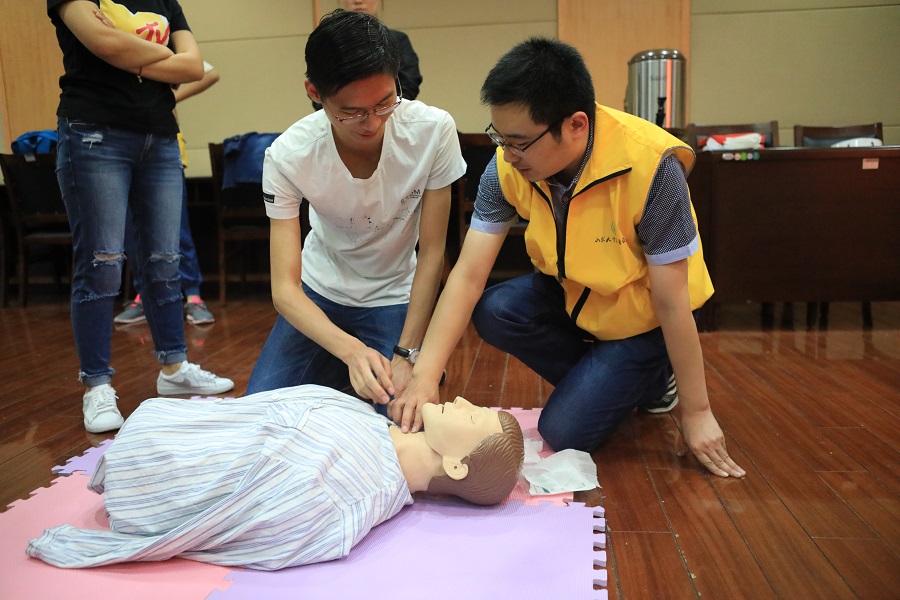 5月12日,1st-Aid社会实践队于齐鲁医院开展生命卫士健康公众急救技能培训。此次培训主要由院前急诊科医生与护士担任指导老师,旨在帮助我们掌握高质量CPR技能操作方法。