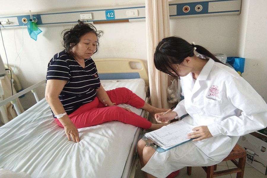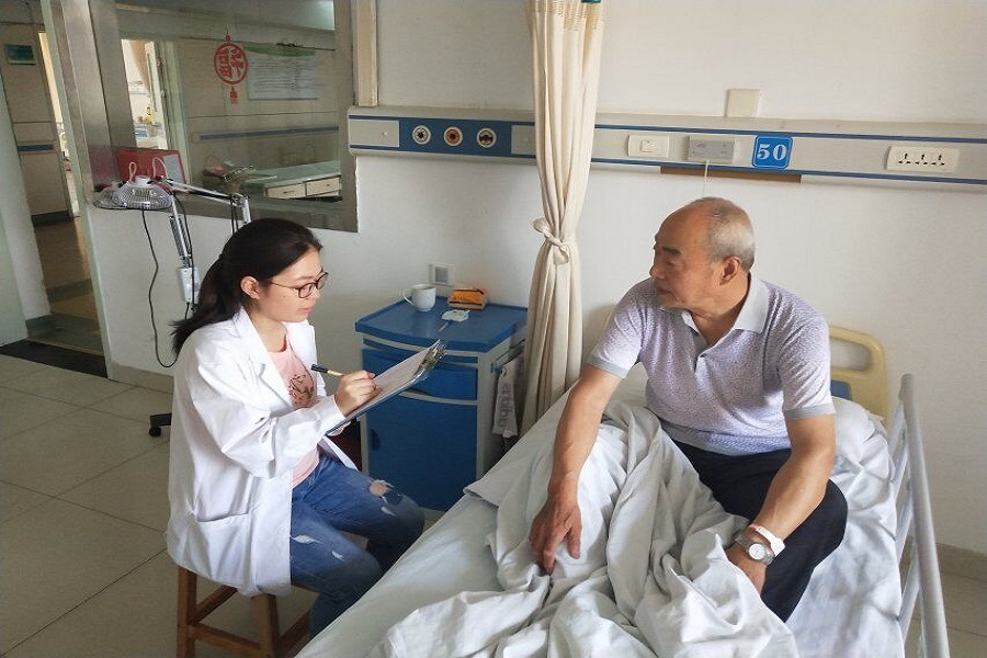 下午1点40分,两名成员提前到达了人民医院,在医生办公室里再次熟悉MMSE量表的使用注意事项与评分标准,争取在对患者进行MMSE量表测试后得到更加合理准确的临床结果。下午2点,神经内科的主任医师接待了两名同学,并告诉了同学们需要做MMSE量表的患者名单。在主任医师的安排下,两位同学先后为三位患者进行MMSE量表的测试,检查患者的智力状态及认知功能缺损程度,并将最终的评分结果转交给了患者的主治医生。前两位患者在MMSE量表的测试中十分配合,在准确理解同学的提问后,根据自己相应的认知能力完成对其记忆、计算和语言等测试。但在同学们为第三位患者进行MMSE量表的检查时出现了沟通困难的问题。由于患者年龄较大以及身体方面的原因,无法听清同学对她的提问,即使在其家属的帮助下,患者也难以理解问题内容并对其作出相应的回答。最后在主任的指导下,该患者MMSE量表的测试结果为患者无法完成。