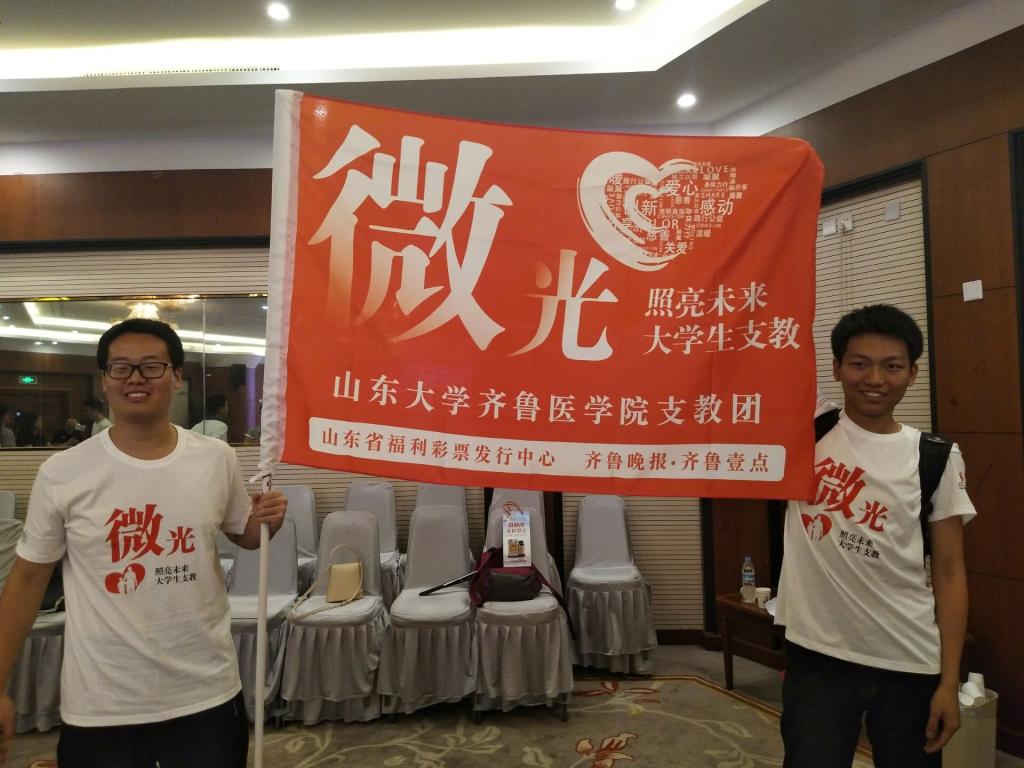 7月9日下午,奇迹风帆爱心服务团到达山东新闻大厦5楼新闻大会堂参加由山东省福利彩票发行中心联合大众报业集团主办的“微光照亮未来”大学生支教活动启动仪式。