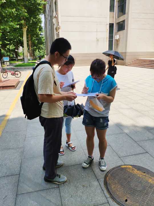 今天,一部分人留在本校区开始了问卷发放工作,还有另外一个小组的成员需要乘坐公交车到达比较远的洪家楼校区。虽然天气很闷热,但填写问卷的大学生们身上的朝气和热情让我们身心的疲惫一扫而空,达成任务的期待让我们加快了脚步。