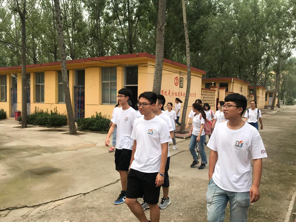 8时,队伍在四号宿舍楼前集合并出发。队员们身着统一的队服,带着行李物品,满怀期待地踏上征程。从济南到唐县,经过五个小时的颠簸,终于到达唐县田家炳中学。在学校相关负责人的带领下,队员们先对学校的基本情况进行了简单初步的了解,宿舍是一排排简易的平房,教学楼也十分简单朴素,队员们走在校园里,想象到未来十天的日子可能会十分艰苦。值得一提的是,在一排排宿舍的墙外,有很多鼓舞人心的红色标语,积极向上;还有一幅幅学生们制作的“表情包”样式的提示语,俏皮又可爱。学校负责人接待热情,为支教团提供了各种生活必需品,并帮助队员们分配好宿舍,表达了对支教团到来的欢迎和支持。