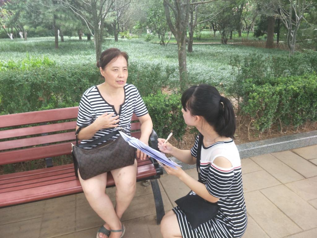 上午8时,和往常一样,队员们早早到达集合地点,为提高调研的广泛度和可靠性,也为给队员们增加调研活动的乐趣,我们对各个小组的调研分区进行了适当调整,调查范围也由居民区变为中老年人的常见活动场所如广场、公园、风景区等,尽量避免采样范围过小、采样群体单一、重复采样的问题。有了先前的尝试和练习,队员们已渐渐消除和解决了畏难情绪和交流问题。不论是表明自己的来历,还是解答关于问卷方面的问题,或是陪老人聊天解闷,队员们都能热情细心地与受访者交流。这不仅有助于调研工作顺利出色地完成,更锻炼了队员们地表达能力。