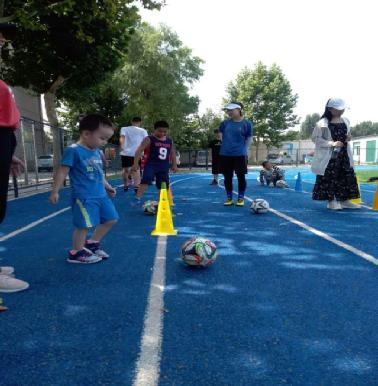 在与教练互相认识后,孩子们都望着眼前的足球和训练器材,眼神中充满了好奇。他们的眼神是那样的纯净无瑕,上天让他们具有了蓝色的特性:冷漠、纯净、忧郁、孤寂,像是一群降落人间的“蓝色的天使”。刚开始很多孩子都兴致勃勃地参与训练,与教练和志愿者积极互动,现场洋溢着欢声笑语。然而半个小时过去,一些孩子开始忍受不了炎热的阳光,注意力也开始无法集中,他们开始哭闹,蹲在地上。作为志愿者的我们,便辅助教练和家长安抚孩子们的情绪,却又有些手足无措,不知道自己究竟有没有帮上忙。最后足球训练在所有人的努力下圆满结束,虽然有些炎热,有些辛苦,但在听到教练说的“多亏了这群小志愿者们,他们做得很棒”时,心中却有一种难以言出的满足感,感觉一切都是值得的。