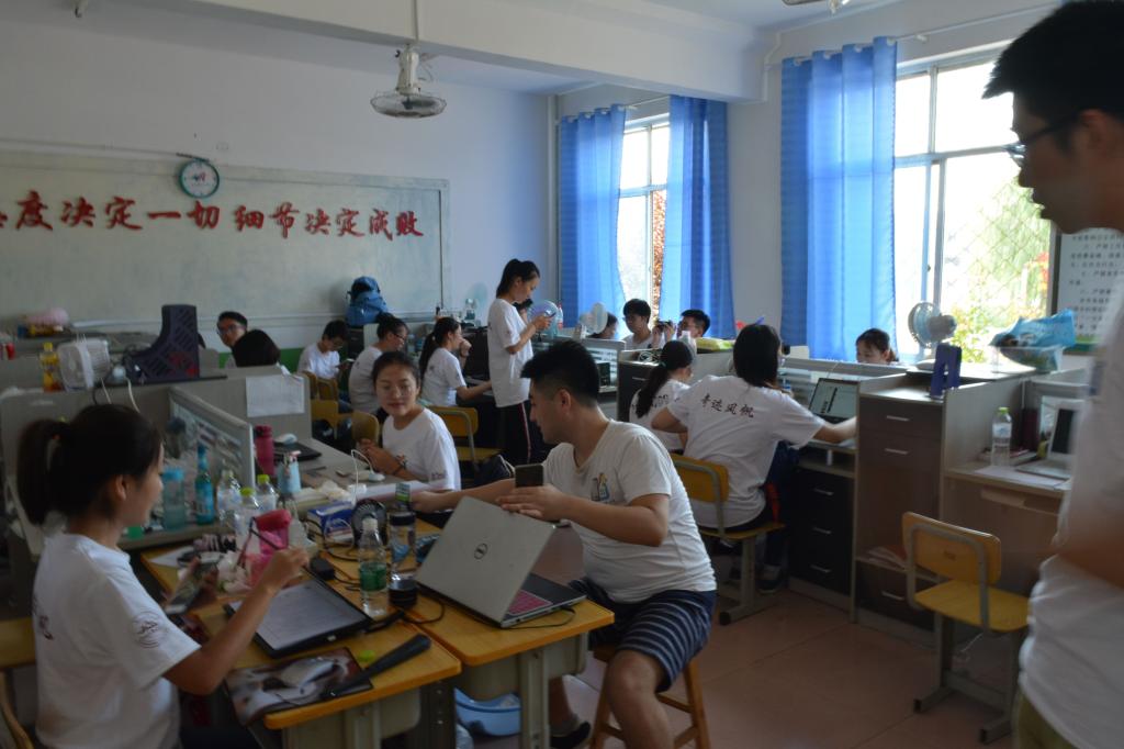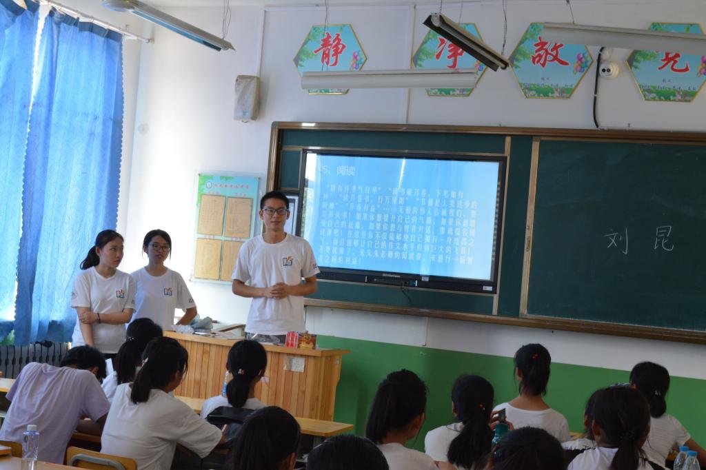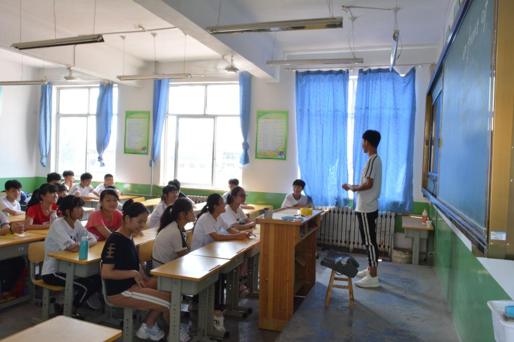 下午,支教课堂正式开始。学生们求知欲很强,积极配合老师的授课,炎热的环境中仍然认真听讲。讲台上的老师虽然汗流浃背,但同学们积极的表现给予老师莫大的安慰和鼓励。