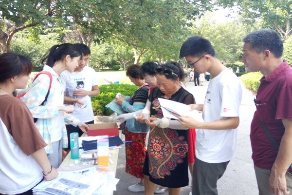 前来询问的游人多是中老年人,他们非常喜欢实践队开展的胃健康科普活动和纷发的宣传手册,说明现在的人们对养生与健康越来越关注。实践队队员在发宣传册的时候,人们也都非常友好热情地接受,让队员们感动不已的同时,也坚定了宣传胃健康的信念。