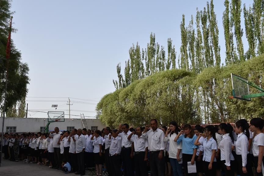 7月23日上午,山东大学新心支教团沙雅分队的11名队员在沙雅县红旗镇巴扎村巴扎大队参加了当地的升旗仪式。