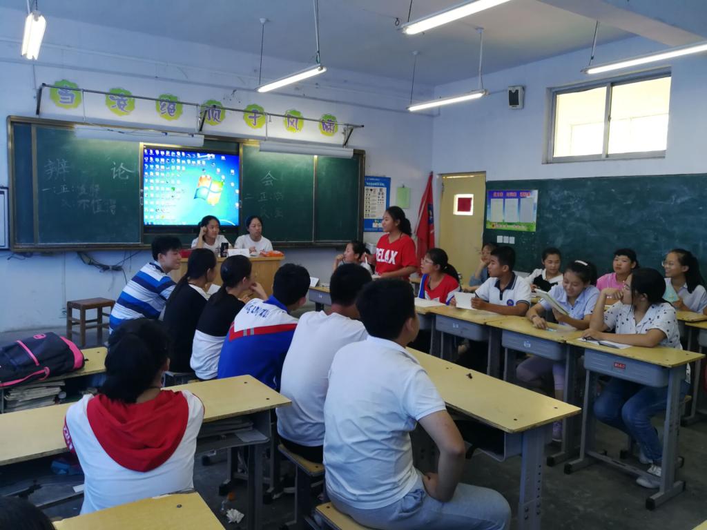 7月20日于永琪老师在四班的 “博古通今”历史课结束后,于晚自习时为同学们播放了电影《甲午大海战》,旨在加深同学们对本段历史的印象。基于电影情节与历史事实,四班三位老师经过讨论后决定开展一次别开生面的辩论赛。辩论赛于21日开始准备,班主任厚天心在班会上为同学们讲解了有关辩论赛的注意事项以及各种技巧的运用。