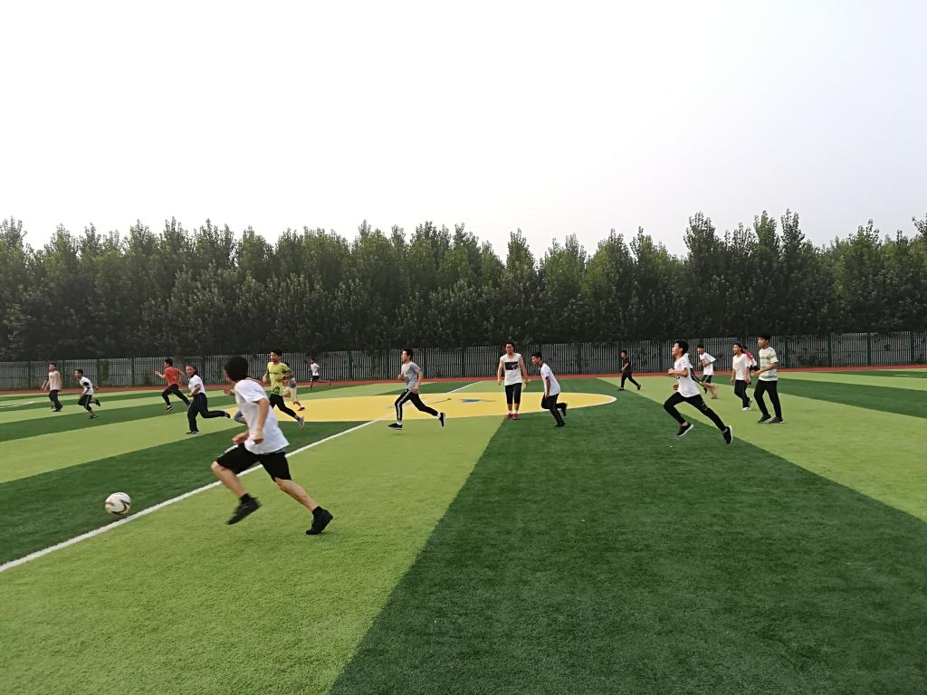 哨声拉开了球赛的帷幕,足球从周老师脚下征战向对方球门。比赛伊始,由于同学们对规则的不熟悉,主裁判的哨声总是在同学们耳边响起。乾坤队同学们积极传控,牢牢将球权控制在脚下,晨曦队同学们稳稳保护着核心队长,为他营造加速空间,拉开对方战线。终于在中场哨音响起前,周老师一脚禁区外世界波打破了0:0的僵局,赢得了阵阵欢呼。下半场晨曦队同学们没有放弃,体力不支的同学暂且下场休息,主裁判厚天心为了弥补人数上的不足,暂时加入晨曦队担任中场左后腰的职位。在外援厚天心“一条龙”的抢断过人下,一条优美的弧线滑向队长陈熙锐老师,陈老师也不负众望,三段加速甩开乾坤队大部分后方队员起脚打门,可惜力度太小被门将双拳挡出门框。最终比分定格在1:0上,乾坤队凭借周老师的精彩射门获得了胜利。