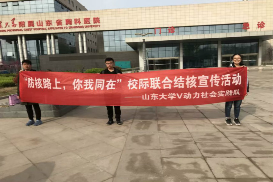 2019年3月22日7时45分,V动力实践队队员们在队长周铭的带领下,带着送给结核病病人和医生的礼物,怀着满心的期待,迫不及待地打车去济南市疾控中心探望患者和白衣天使们,但是天不遂人愿,正逢堵车时间,车速实在令人心忧,队员们期待的心情也在堵车途中逐渐转为焦虑。终于,队员们于八点半成功到达目的地。