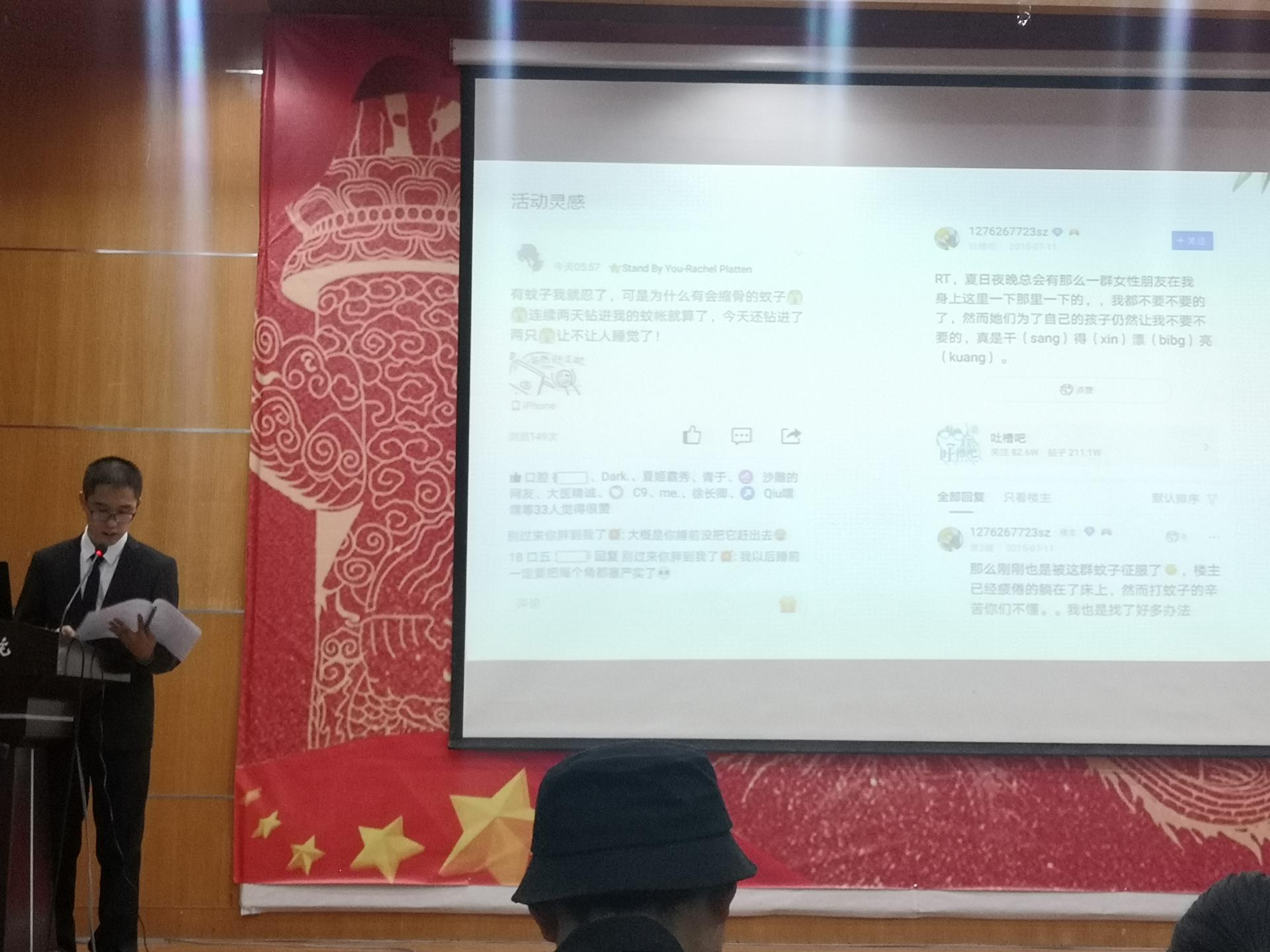 在发言结束后我们还对评委老师们提出的问题作出了耐心地解答。在有老师提出可以将这个想法推广向其他校区时,我们也陈述了我们的想法,即在西校实行一段时间并取得良好效果后逐步向其他校区开展此类活动;也有老师提出对诱蚊水效果的质疑,我们也表示已经做过了一些实验来证明其效果,保证此次志愿设计的严谨。