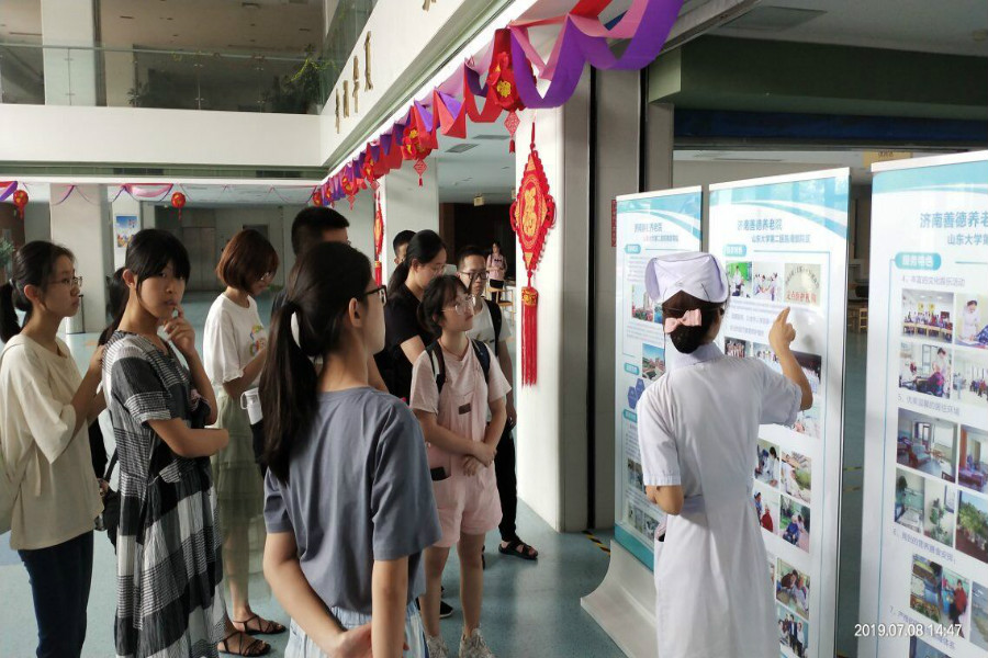 2019年7月8日星期一,5-HT社会实践队全体成员乘坐公共汽车来到济南善德养老院山东大学第二医院南部院区进行参观学习,主要目的是从学习中了解医养结合发展前景。