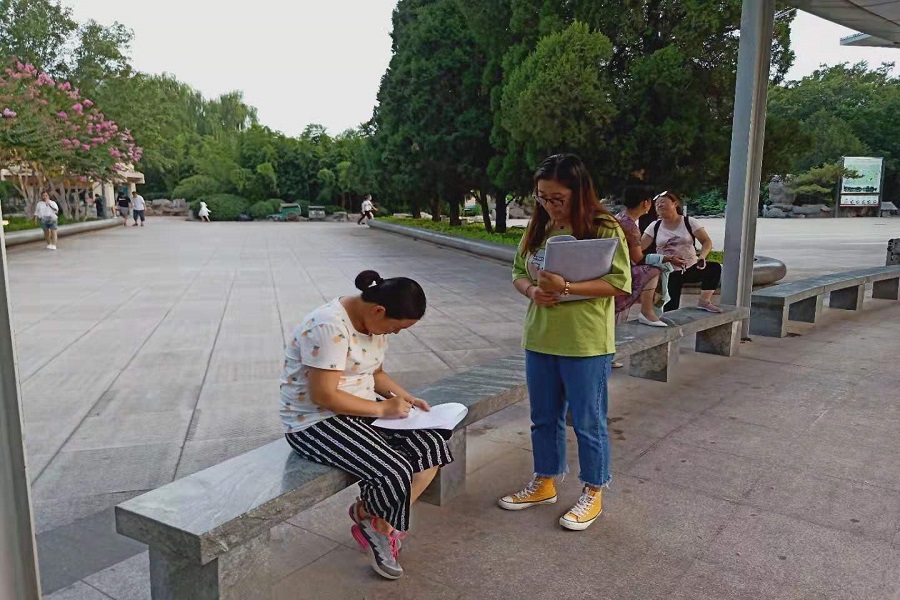 7月15日,山东大学Make It社会实践队赴泉城公园开展关于“城市居民对医养结合的了解和看法”的问卷调查与访谈活动。调研过程中队员们始终秉持客观,理性的原则。