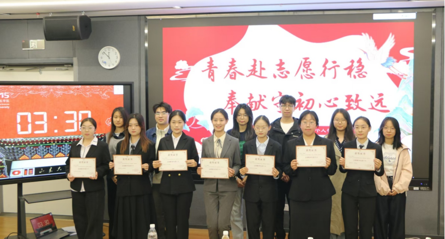 活动最后,经过综合评审,尹珮懿、杨雯涛等8名同学荣获志愿服务先进个人称号,评委们为获奖同学颁发志愿服务先进个人荣誉证书并合影留念。