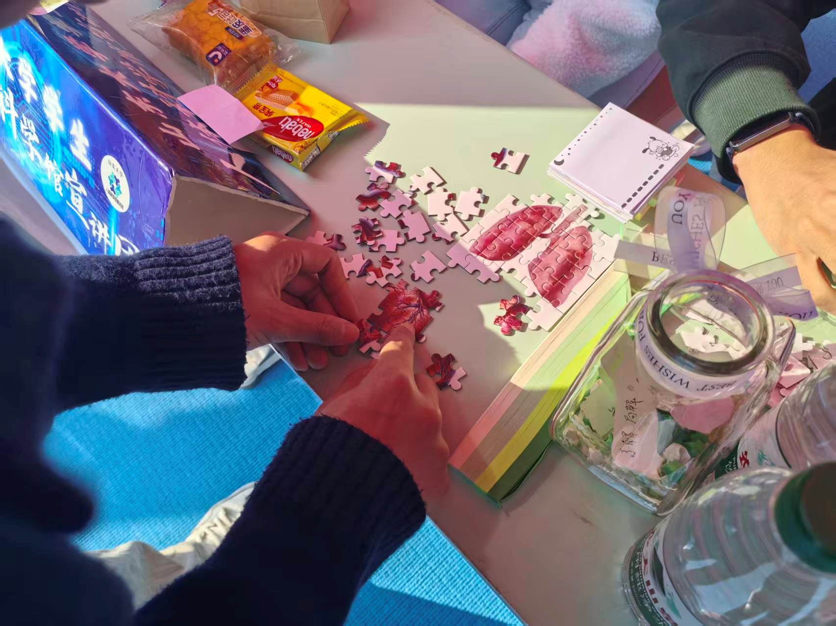 基础医学院社团不仅传递人文关怀的温度,同时也昭显医学科普的精度。山东大学学生人体科学馆宣讲团凭借丰富的知识储备与直观的人体器官拼图,吸引众多同学前来了解学习。很多同学在互动后,踊跃报名了该团后续的宣讲活动。山东大学学生AI健康社致力于探索医学与科技的交叉领域,他们通过分享前沿的医学科学知识,有效拓宽了学生的学术视野。山东大学学生心语涟漪心理协会则通过动手小游戏,让同学们在放松、愉悦身心的同时更好地了解心理知识。