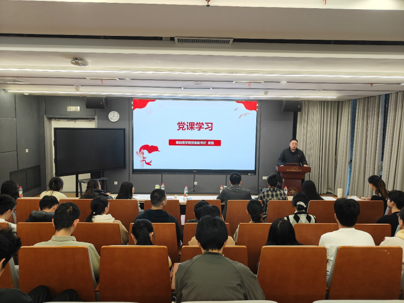为加强基层党组织建设,壮大青年党员队伍,强化理想信念教育,经学院党委预审批准,基础医学院本科生党支部于11月23日召开预备党员接收大会,并邀请党委副书记姜昆同志讲授专题党课。大会就发展对象的入党情况进行逐个讨论和表决,党支部全体党员,支部全体党员参加会议。