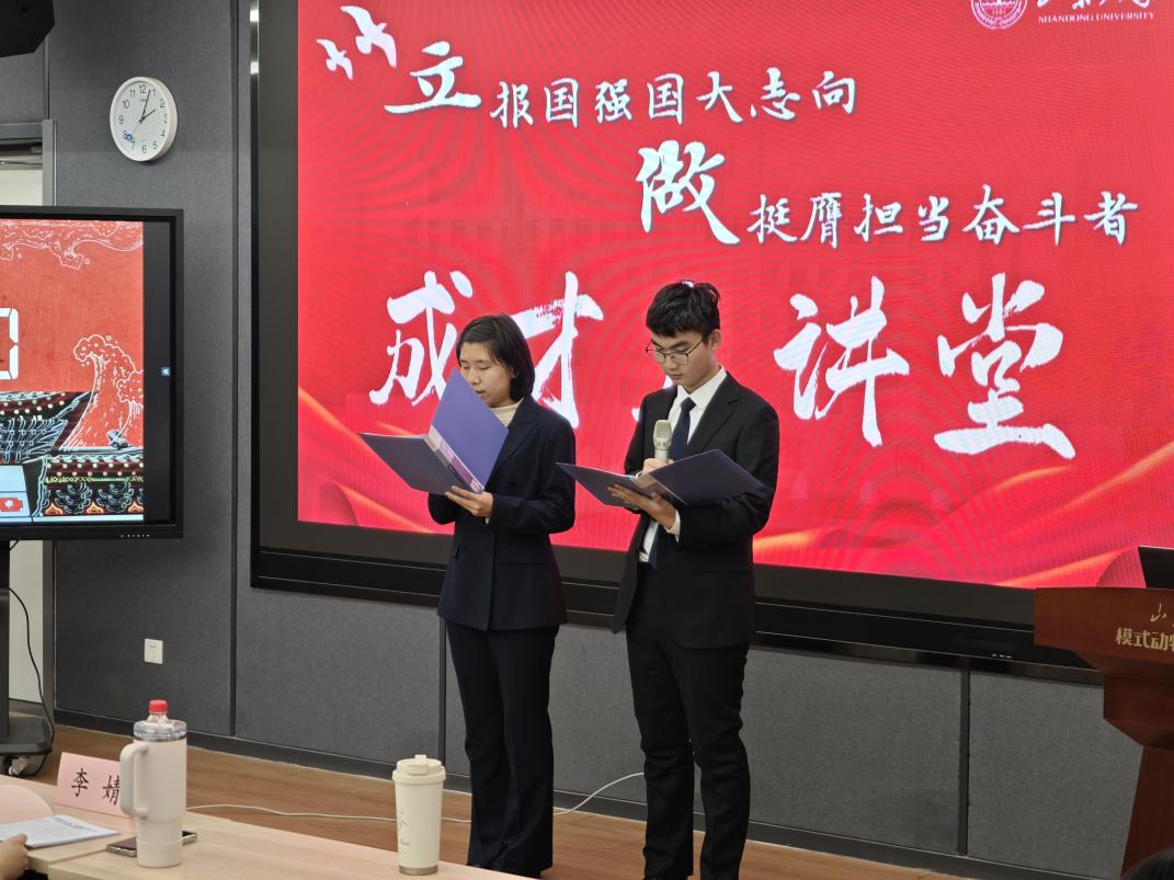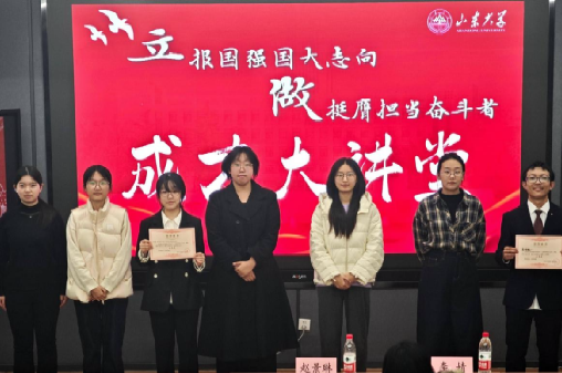2025年11月23日下午,山东大学基础医学院团委与学生会社团权益部在趵突泉校区成功举办以“立报国强国大志向,做挺膺担当奋斗者”为主题的成才大讲堂活动。本次活动旨在深入学习贯彻党的二十届四中全会精神,引导青年学子树立远大理想,锤炼过硬本领,在强国建设、民族复兴的新征程中展现山大人的青春风采。