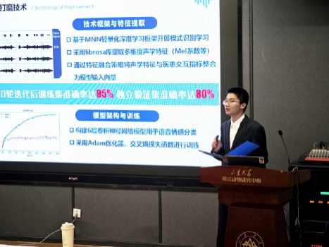 本次讲堂不囿于通过传统汇报演讲叙述抒怀,还创新采用诗朗诵、情景剧等形式,使讲述更具感染力与表现力,生动展现新时代医学青年的多元风采。在内容选题上,讲者们聚焦于专业实践,从真挚的支教感悟,到“急救侠”李春林的榜样事迹,再到马保华教授的师者风范,分享内容层层深入。在“数智AI”领域,更有团队聚焦人工智能在医学领域的应用前景,详细介绍了自主研发的医患沟通智能系统,展现了医工交叉融合的广阔前景与山大青年的创新活力。