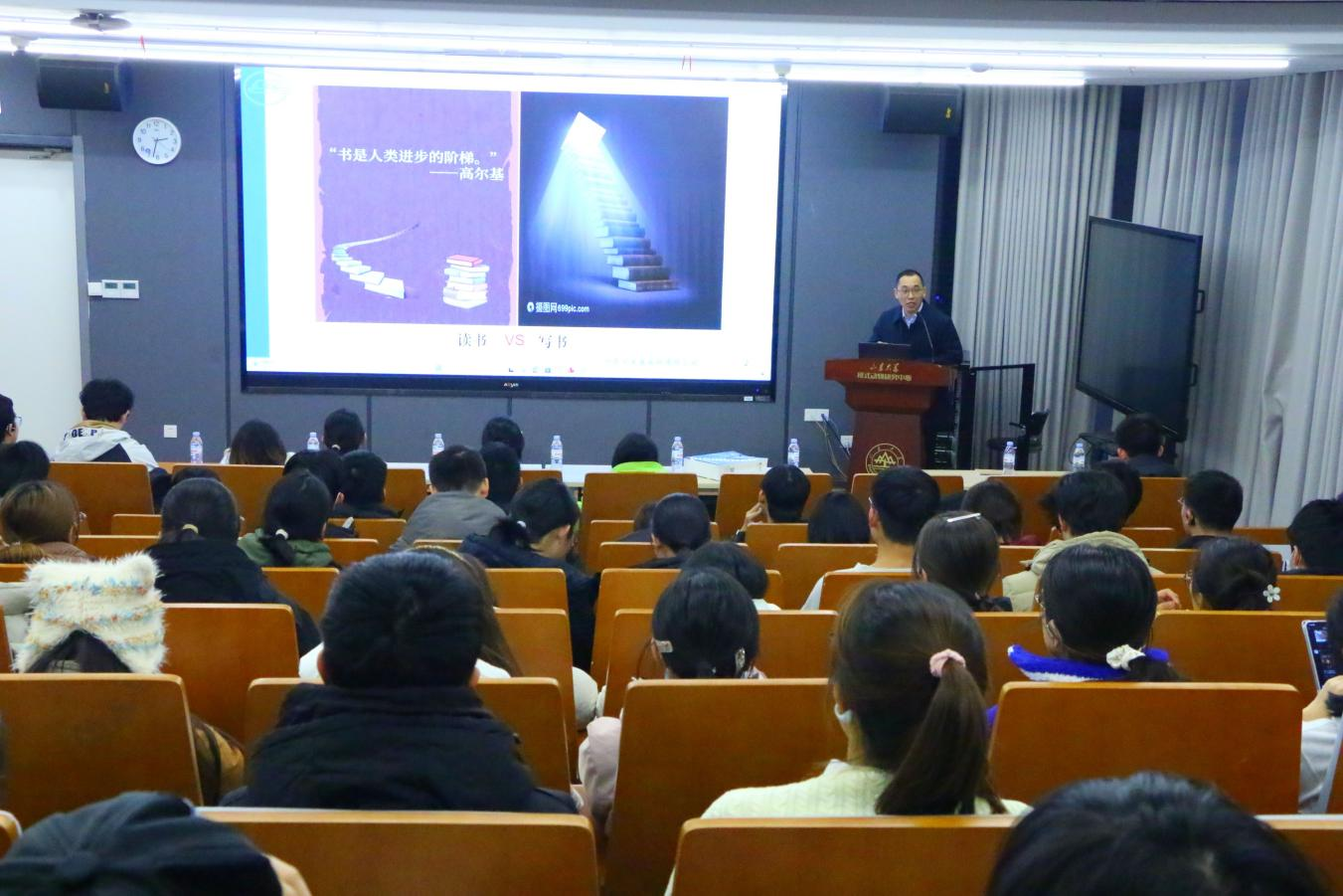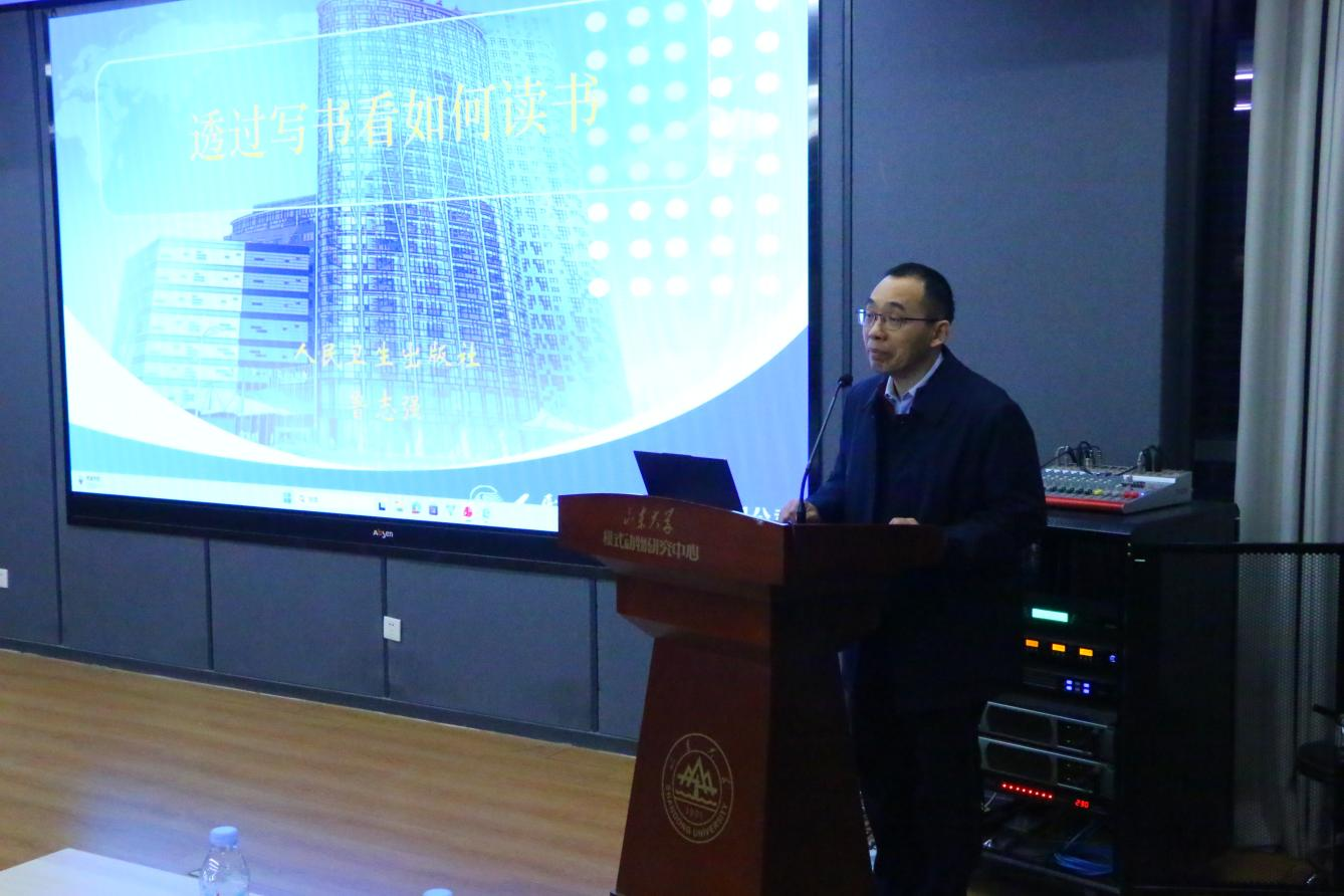 本次讲座特邀人民卫生出版社学术编辑一部主任、编审鲁志强老师主讲。以“透过写书看如何读书”为主线,鲁志强老师结合自身8年医学院校本及研究生阶段学习经历、22年编辑出版工作积淀,从“为什么写一本书”“如何写一本书”“如何读一本书”三个核心维度,系统阐释医学生高效阅读、夯实学业基础的关键路径。内容紧密贴合医学生学习实际与学业发展需求,逻辑清晰,引发在场学生强烈共鸣。