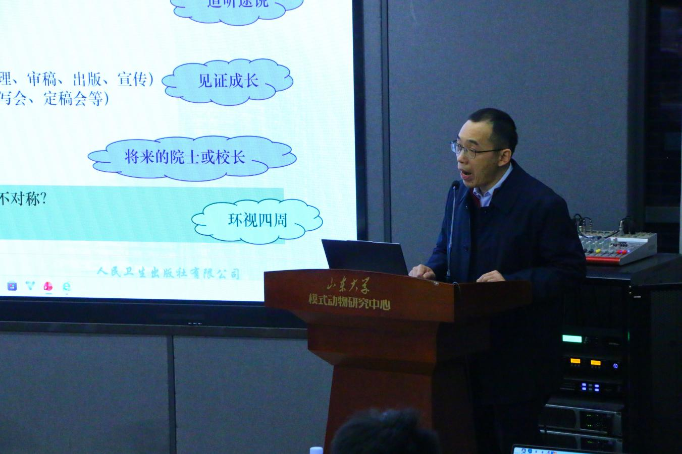 12月13日下午,第四十期“医路成长”系列讲座在山东大学趵突泉校区模式实验动物中心负一楼报告厅顺利举行。基础医学院副院长刘尚明到场并开篇致辞。