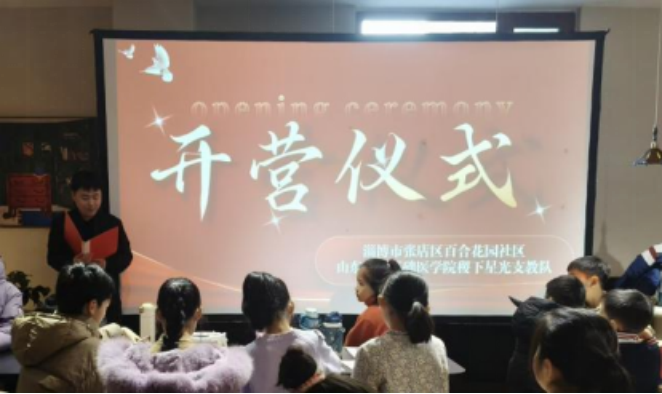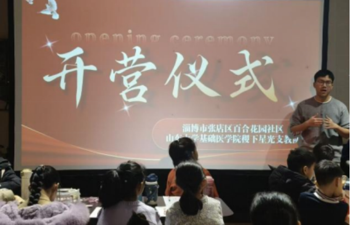 2026年2月5日,山东大学基础医学院奇迹风帆支教团“稷下星光”支教队寒假支教活动开营仪式在淄博市张店区百合花园社区举行。校地双方代表、支教队全体成员及社区家庭齐聚,共同启动了本次以学业辅导和健康科普为特色的寒假支教活动。
