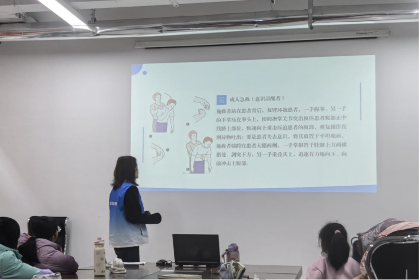 立足专业,守护健康。实践队充分发挥专业优势,开设“童心护航”健康科普系列课程。队员们向孩子们系统讲解了生理健康知识与常见外伤处理方法,并现场演示海姆立克急救法、心肺复苏等关键急救技能,通过手把手指导模拟操作,让孩子们掌握了基本的急救方法与自我保护要领。