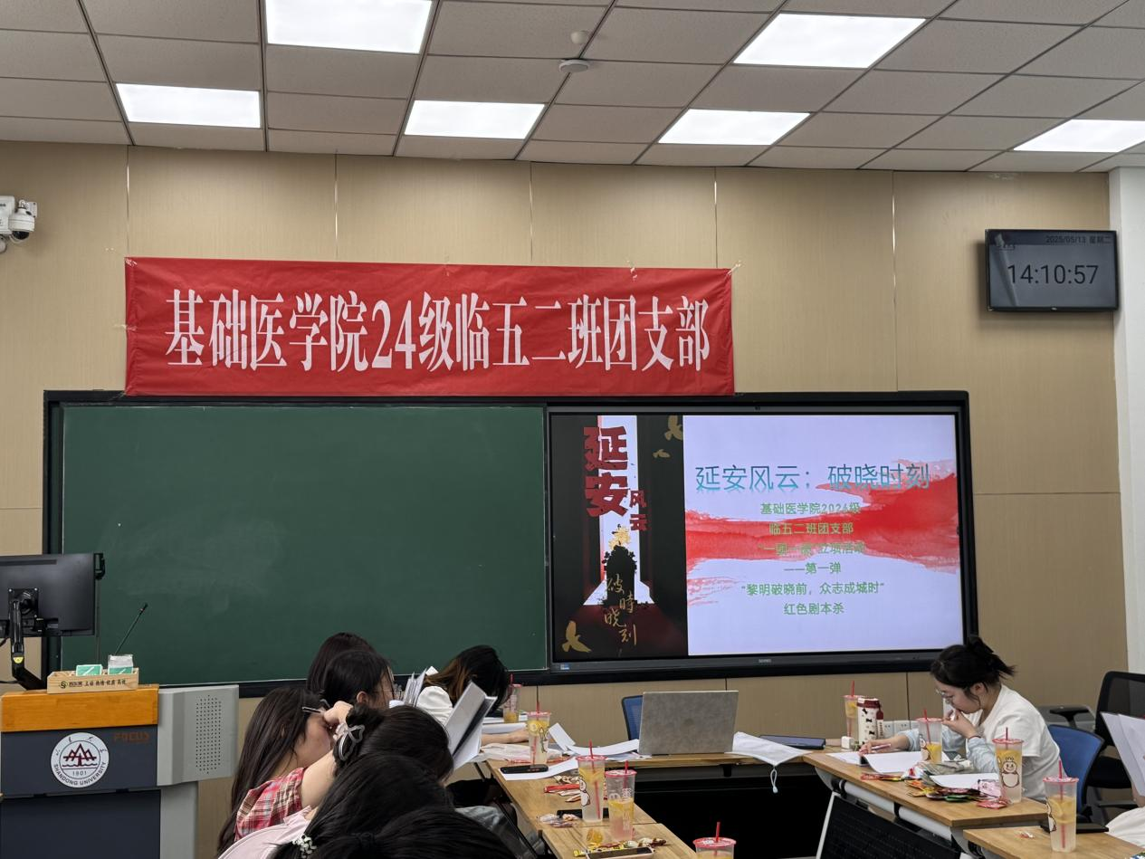 2025年5月13日,班级团支部成功举办了本年度“一团一品”首场活动——“黎明破晓前,众志成城时”红色剧本杀。活动由团支书刘芯彤同学主持,旨在通过沉浸式剧本体验,引导同学们重回延安革命岁月,感悟家国情怀,提升组织凝聚力。
